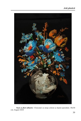 39Art%u0103 plastic%u0103Vaz%u0103 cu flori albastre. Cloisonn%u00e9 cu nisip colorat %u0219i r%u0103%u0219in%u0103 epoxidic%u0103. 30x50 cm. August 2024