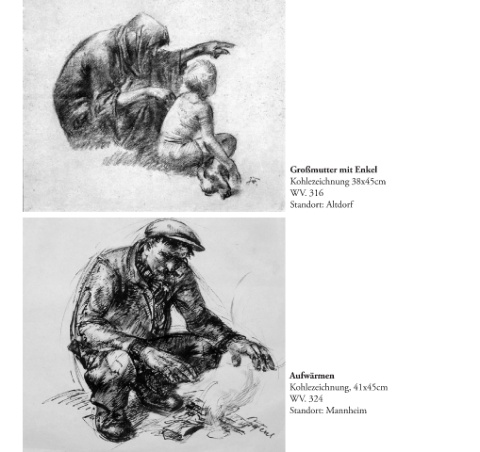 Großmutter mit enkel Kohlezeichnung 38x45cm WV. 316 Standort: Altdorf aufwärmen Kohlezeichnung, 41x45cm WV. 324 Standort: Mannheim 84