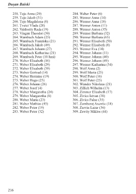 270. Weber Elisabeth (16) 296. Wenner Johann (49)