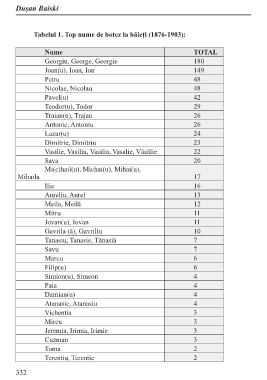 Tabelul 1. Top nume de botez la băieți (1876-1903):
