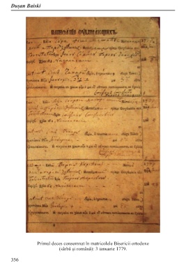 Dușan Baiski Primul deces consemnat în matricolele Bisericii ortodoxe (sârbă și română): 3 ianuarie 1779. 356