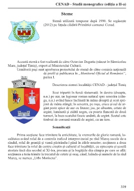 Descrierea stemei localităţii CENAD - judeţul Timiş