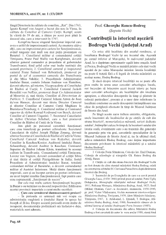 decesul său, care a intervenit în 1767. Contribuţii la istoricul aşezării