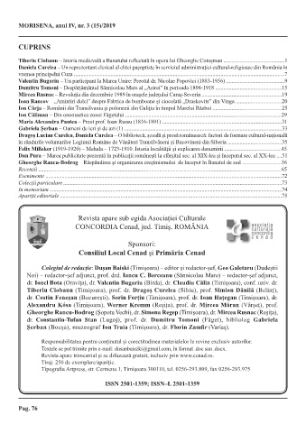 Ion Cârja – Românii din Transilvania şi polonezii din Galiţia în timpul Marelui Război ...................................................25