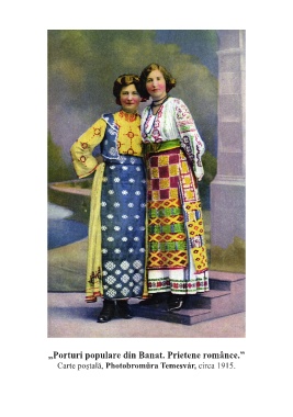 „Porturi populare din Banat. Prietene românce.” Carte poştală, Photobromüra Temesvár, circa 1915.