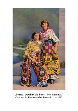 „Porturi populare din Banat. Fete românce.” Carte poştală, Photobromüra Temesvár, circa 1915.