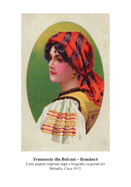Frumuseţe din Balcani – Româncă Carte poştală inspirată după o litografie cu portul din Mehadia. Circa 1915.