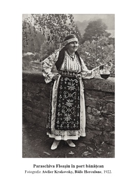 Paraschiva Floaşiu în port bănăţean Fotografie Atelier Krakovsky, Băile Herculane, 1922.