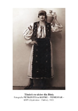 Tânără cu ulcior din Biniş Fotografie PETKOVITS és KOTRU – TEMESVAR – GYV (Gyárváros – Fabric), 1923.