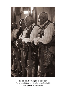 Paori din Secusigiu la biserică Carte poştală foto. Atelierul fotografic ARTA TIMIŞOARA, circa 1935.