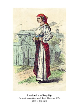 Româncă din Ruşchiţa Gravură colorată manual, Paul Thumann 1876 (190 x 280 mm)
