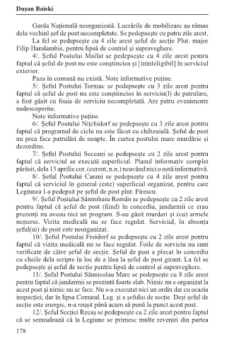 8/. Șeful Postului Carani se pedepsește cu 4 zile arest pentru