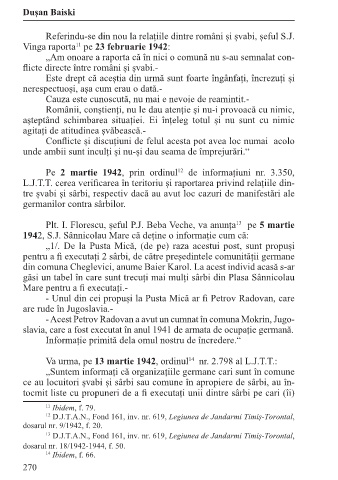 Referindu-se din nou la relațiile dintre români și șvabi, șeful S.J.