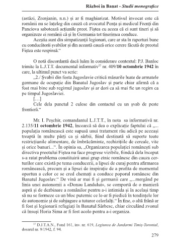 Mr. I. Peșchir, comandantul L.J.T.T., în nota sa informativă nr.