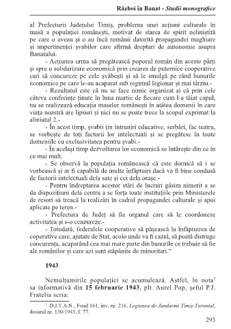 sa informativă din 15 februarie 1943, plt. Aurel Pop, șeful P.J.