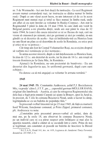 24 mai 1945. Plt. Constantin Andreescu, șeful P.J. Becicherecu