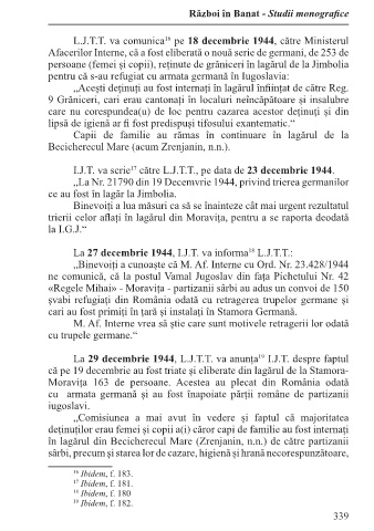 L.J.T.T. va comunica pe 18 decembrie 1944, către Ministerul