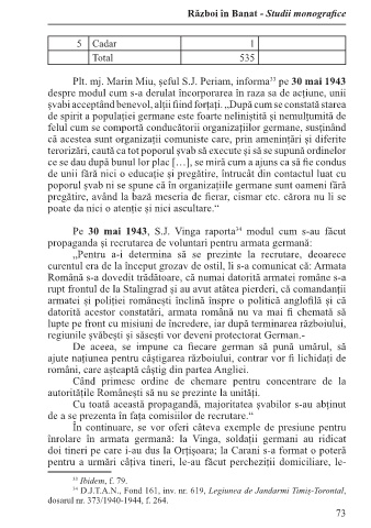 Plt. mj. Marin Miu, șeful S.J. Periam, informa pe 30 mai 1943