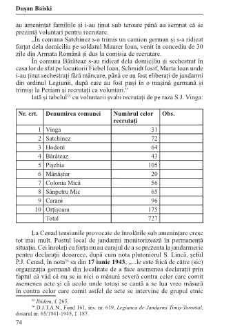 Iată și tabelul cu voluntarii șvabi recrutați de pe raza S.J. Vinga: