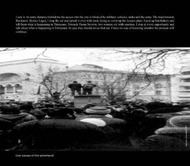 domiciliu. Se aşteptau represalii. O stare epuizantă de aşteptare şi de stress. Eu eram singurul semnatar din Timişoara. Devenisem I saw it. At some distance behind me the access into the city is blocked by military vehicles, tanks and the army. The road towards