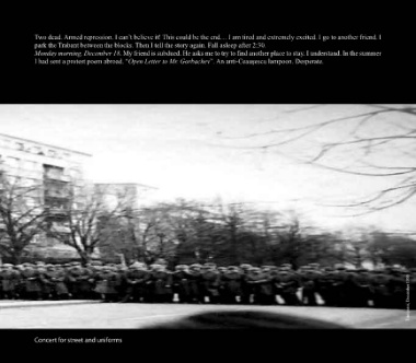 Între timp vorbesc cu toţi cei din jur. Two dead. Armed repression. I can’t believe it! This could be the end… I am tired and extremely excited. I go to another friend. I