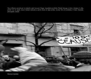 Nae şi Denisa sunt plecaţi la redacţiile unde lucrează. Singur. Aşteptând un telefon. Păşind întreaga zi dintr-o încăpere în alta,      and news-hunting on the radio. In the morning, watching the street from behind the curtain in the library. I try to interpret the