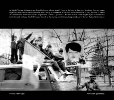 Dacia în care suntem înghesuiţi. Secţia 2 de miliţie. Civilii de la Filaj ne predau miliţienilor în uniformă. Începe vârtejul. Un nou on Kiseleff Avenue. Contact person: Peter Lindgreen, cultural attaché. Two p.m. We leave at about one. We change from one means