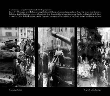 îi întâlnesc. A fugit Ceauşescu! Cei pe care îi întâlnesc şi care văd plăcuţa de înmatriculare a Trabantului strigă: “Hai Timişoara!”. December 22, morning in the Trabant, crossing Bucharest. Columns of tanks and armoured cars. Roar of the crowd from the centre.