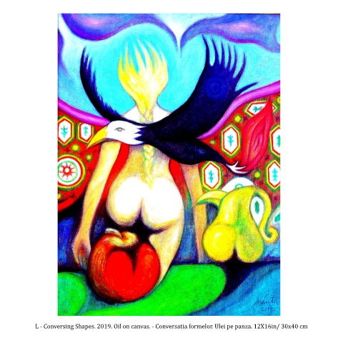 L - Conversing Shapes. 2019. Oil on canvas. - Conversatia formelor. Ulei pe panza. 12X16in/ 30x40 cm