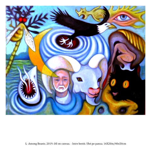 L -Among Beasts. 2019. Oil on canvas. - Intre bestii. Ulei pe panza. 16X20in/40x50cm