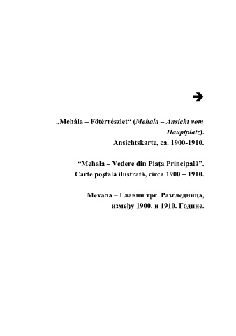 „Mehála – Fötérrészlet“ (Mehala – Ansicht vom Hauptplatz). Ansichtskarte, ca. 1900-1910. “Mehala – Vedere din Piaţa Principală”. Carte poştală ilustrată, circa 1900 – 1910. Мехала – Главни трг. Разгледница, између 1900. и 1910. Године.
