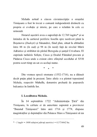 I. Localitatea Mehala.