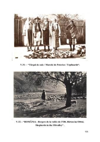 V.31 – “Târgul de oale / Marché de Poteries / Topfmarkt“. V.32 – “ROMÂNIA - Bergers de la vallée de l’Olt, Hirten im Olttal, Shepherds in the Oltvalley“ . 105