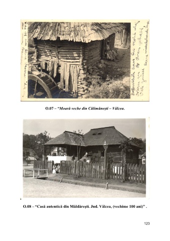 O.07 – “Moară veche din Călimăneşti – Vâlcea. O.08 – “Casă autentică din Măldăreşti. Jud. Vâlcea, (vechime 100 ani)” . 123
