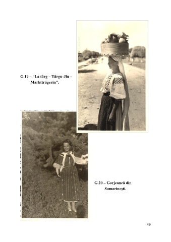 G.19 – “La târg – Târgu-Jiu – Marktträgerin”. G.20 – Gorjeancă din Samarineşti. 49