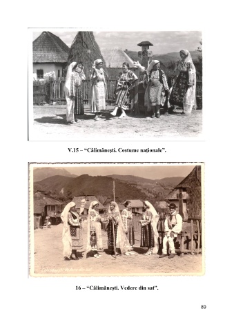 V.15 – “Călimăneşti. Costume naţionale”. 16 – “Călimăneşti. Vedere din sat”. 89