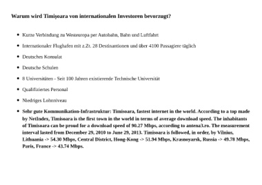 Sehr gute Kommunikation-Infrastruktur: Timisoara, fastest internet in the world. According to a top made