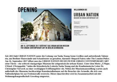 Am 16. September 2017 öffnet nun das URBAN NATION MUSEUM FOR URBAN CONTEMPORARY ART