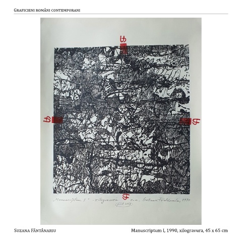 Graficieni români contemporani Suzana Fântânariu Manuscriptum I, 1990, xilogravura, 45 x 65 cm