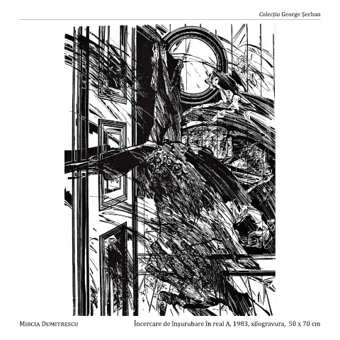 Colecția George Șerban Mircia Dumitrescu Încercare de înșurubare în real A, 1983, xilogravura, 50 x 70 cm