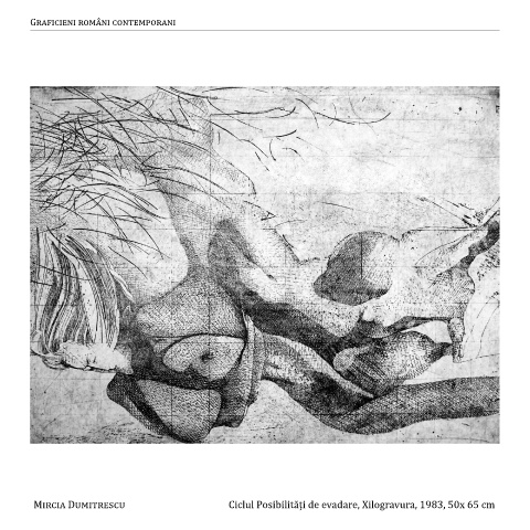 Graficieni români contemporani Mircia Dumitrescu Ciclul Posibilități de evadare, Xilogravura, 1983, 50x 65 cm