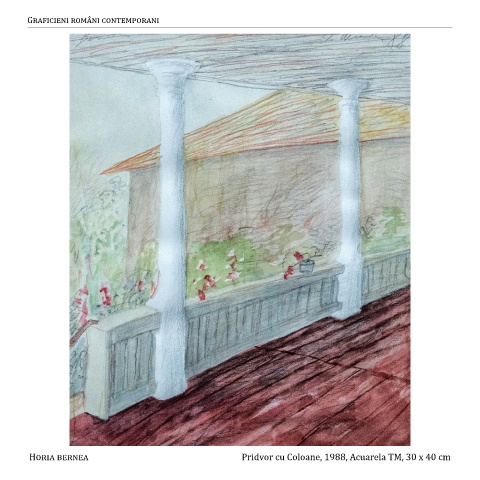 Graficieni români contemporani Horia bernea Pridvor cu Coloane, 1988, Acuarela TM, 30 x 40 cm