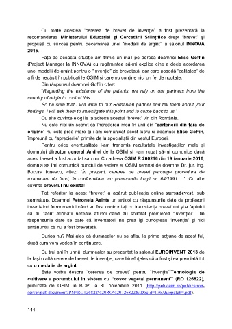 Bucura Ionescu, citez: “În prezent, cererea de brevet parcurge procedura de