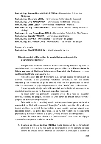 rezultatele unui concurs de ocupare a unor posturi didactice la Universitatea de