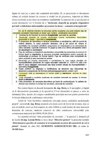 dosarului de concurs, amănunt cunoscut de către conducerea universităţii prin