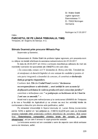 Subsemnatul dr. Walter Stahli de profesie inginer agronom, prin prezenta revin