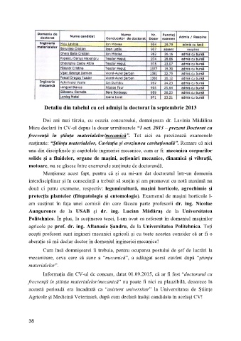 Detaliu din tabelul cu cei admişi la doctorat în septembrie 2013