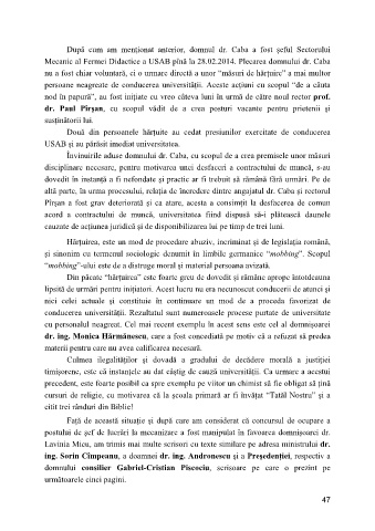 persoane neagreate de conducerea universităţii. Aceste acţiuni cu scopul “de a căuta