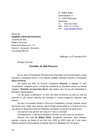 Numele meu este dr. Walter Stahli, actualmete pensionar. Sunt cetăţean