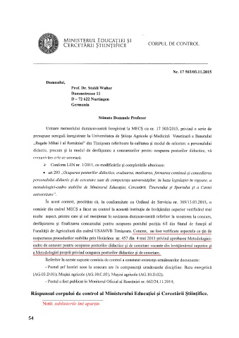 Răspunsul corpului de control al Ministerului Educaţiei şi Cercetării Ştiinţifice. Notă: sublinierile îmi aparţin. 54